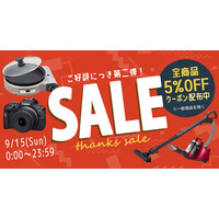 ホームショッピング「全商品5%OFFクーポンセール(一部除外品あり)」2024年9月15日0:00~23:59