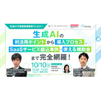 【10/10開催】生成AIで新規事業開発ウェビナー 生成AIの利活用ポイントから導入プロセス、SaaSサービス組込事例~使える補助金まで完全網羅!