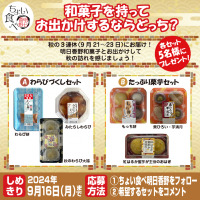 秋に味わいたい明日香野和菓子のセットを選んで貰える! 「和菓子を持ってお出かけするならどっち?」キャンペーンスタート!