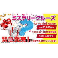 クルーズ予約サイト「ベストワンクルーズ」、9月下旬出発のミステリークルーズを1コース追加で設定し、本日より販売を開始いたしました