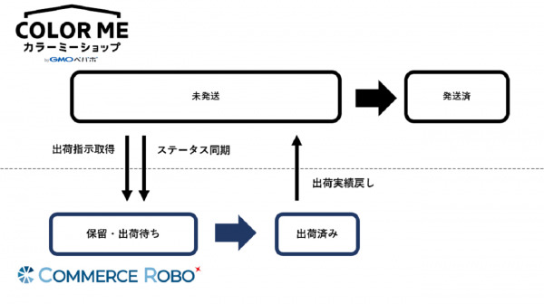 コマースロボで「出荷済み」になった注文を対象に「出荷日」「追跡番号」を「カラーミーショップ byGMOペパボ」に連携し「発送済み」に変更します。