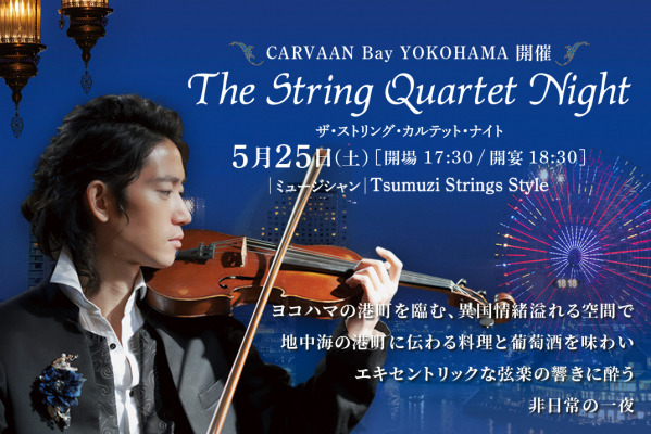 ストリング・カルテット・ナイトではCARVAANのイメージソング『CARVAAN ~砂塵の彼方へ~』を筆頭に、中世アラブの宮廷音楽モアシャハットを彷彿とさせる5拍子、変拍子の音楽を優雅にノスタルジックにお届けします。