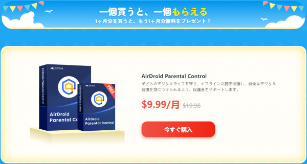 子供見守りアプリAirDroid Parental Control、1ヶ月分を買うと、もう1ヶ月分無料をプレゼント!
