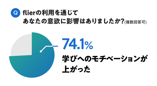 また、「flier business」を導入している企業のユーザー様へのアンケート結果では、『flierの利用を通じてあなたの意欲に影響はありましたか?』という質問に対し、『学びへのモチベーションが上がった』が半数以上を占め、学びのきっかけづくりだけではなく、利用後の学びに対する意識においても、良い影響を与えていることがわかります。