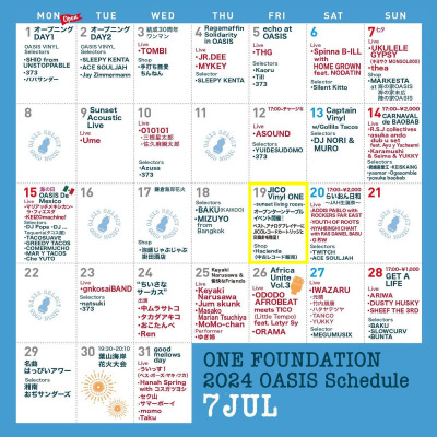 OASISは毎年7月~8月にかけて毎日ライブやイベントを開催している海の家です。