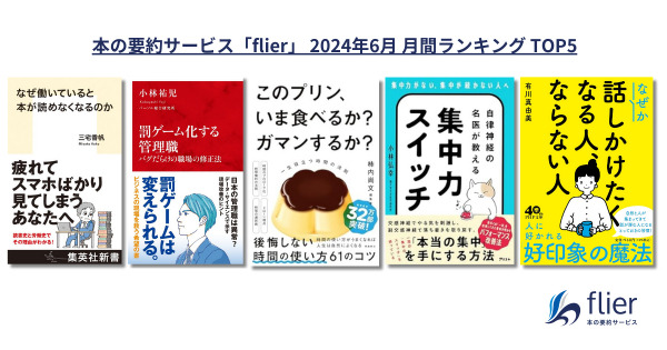 本ランキングは、flierの有料会員を対象に、スマホアプリおよびウェブのアクセス数(紹介書籍の要約閲覧数)を合算し順位付け。集計期間は、2024年5月25日~2024年6月24日です。