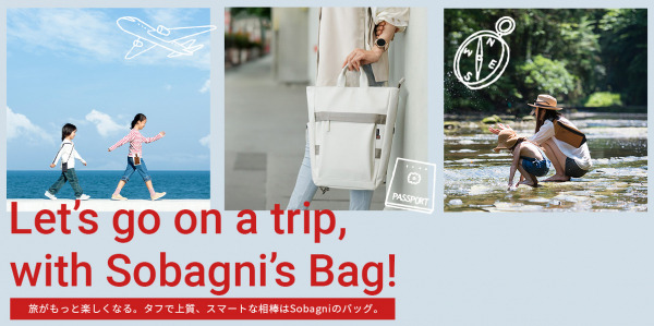 「旅がもっと楽しくなる。タフで上質、スマートな相棒はSobagniのバッグ」をテーマに、