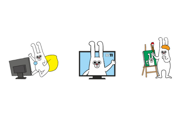 耳の形が「11」のウサギで、BS11公式キャラクターです。笑うときは爆笑、泣くときは号泣がモットーのBS11宣伝マン!