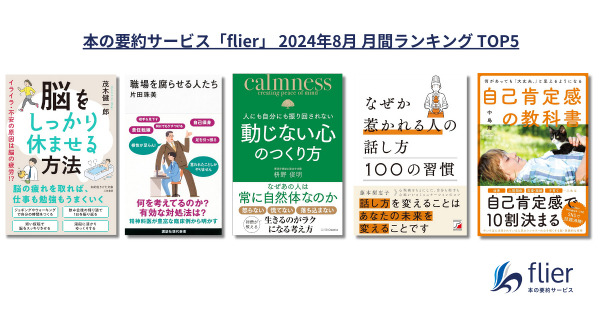 本ランキングは、flierの有料会員を対象に、スマホアプリおよびウェブのアクセス数(紹介書籍の要約閲覧数)を合算し順位付け。集計期間は、2024年7月25日~2024年8月24日です。