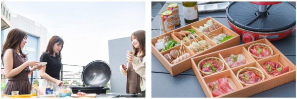 テラスのガーデンテーブルで、無煙ロースターを用いたBBQを楽しめます。(オプション、別料金)