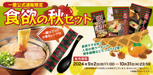 今年は、「一蘭ラーメン 釜だれとんこつ」を含む新たなラインナップで、更に充実した内容でお届けいたします。味覚の秋にぴったりの本商品をぜひお楽しみください。