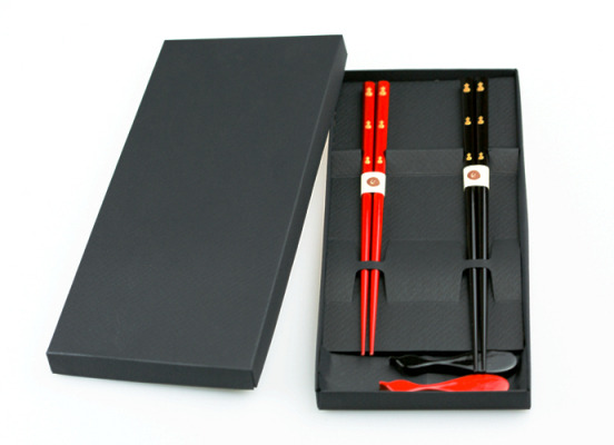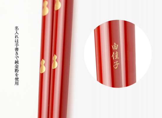 越前漆器 夫婦漆箸セット【無病息災】(金粉名入れ・箸置付)