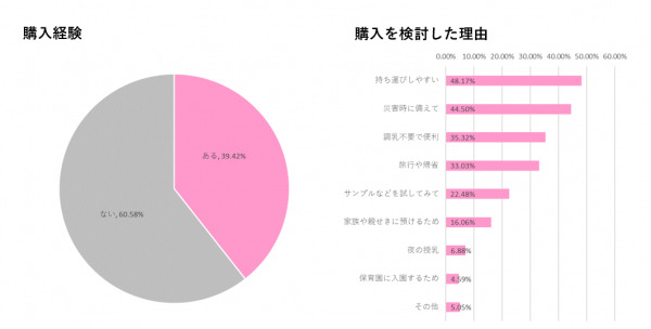 液体ミルクは2018年8月から国内製造が可能になった比較的新しいカテゴリーの商品である。日常での使用はもちろん、災害時のアイテムとしても有用であることから子育て世帯から高い関心を集めている。そこで株式会社コズレは、生後3ヶ月以降の子どもを持つコズレ会員を対象に、「液体ミルク」購入の実態について調査・分析を実施した。
