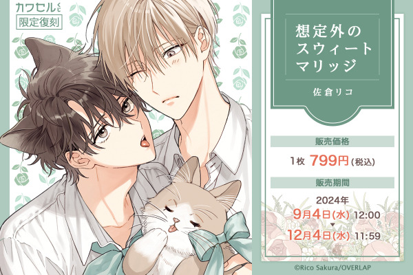 クールで真面目なサラリーマンの結城 律は、同期でライバルの本条 悠馬からワケあってプロポーズされる。アラサー独身イケメンリーマンふたりの、嘘から始まる甘くて美味しいマリッジラブを描いた人気作「想定外のスウィートマリッジ」が「カワセルくじ」限定描き下ろしイラストを使用したくじで【復刻再販】開始です。
