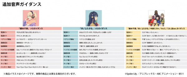 本コラボレーションモデルは、左右ハウジングアルミ製プレート共に「喫茶リコリコ」をイメージしたデザインに仕上げ作品の世界観を表現しました。初期搭載音声ガイダンスは「錦木千束」「井ノ上たきな」「中原ミズキ」「クルミ」「ミカ」の掛け合いボイスを搭載。電源オンやオフ、ペアリング時やタップ音等の計11ワードのボイスを楽しめます。尚、ヘッドホンお届け時期に専用アプリ「ANIMA Studio」にて「錦木千束のソロガイダンス」、「井ノ上たきなのソロガイダンス」、初期搭載の内容とは異なる「錦木千束」「井ノ上たきな」「中原ミズキ」「クルミ」「ミカ」の掛け合いボイス、それぞれ各11ワードの販売を予定しております。「リコリス・リコイル」ワイヤレスヘッドホンご購入者のみダウンロード購入が可能で、初期搭載ボイスからDL購入ボイスへの切り替えが可能となります。尚、「錦木千束」と「井ノ上たきな」の描き下ろしイラストデザインの「アクリルヘッドホンスタンド」及び、喫茶リコリコデザイン「ヘッドホンポーチ」を受注販売(受注生産)致します。ヘッドホン用パッケージ、アクリルヘッドホンスタンド用パッケージも「錦木千束」と「井ノ上たきな」の描き下ろしイラストデザインとなっております。
