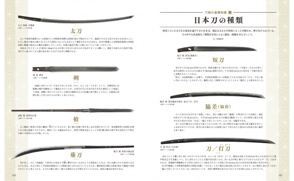 日本刀の基礎知識を学べるコラムページも収録。「日本刀の種類」では、短刀、脇差、刀、太刀など、実は沢山ある日本刀の種類を紹介します。