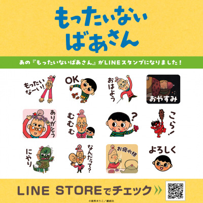 誕生から今年で20周年の絵本『もったいないばあさん』がLINEスタンプになってインクルーズより配信開始いたしました。本作品のキーワードとなる「もったいない」のメッセージはもちろん、どなたでも使いやすい汎用性のある内容が盛りだくさんのLINEスタンプとなっております。