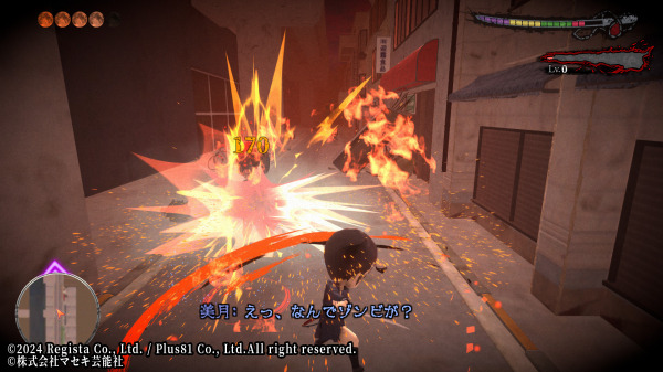 『revive of the moon(リバイブ・オブ・ザ・ムーン)』は、襲いかかってくるゾンビ(本作では「アカメビト」といいます)を「斬る」「撃つ」などを駆使して倒してゆくゾンビアクションゲームです。
