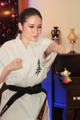 世界武道連盟理事でもあり、空手4段の樽谷大助の元、空手初段を獲得し、
