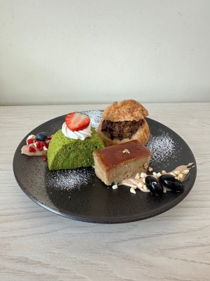 ひんやりと程よい甘さの”ほうじ茶のカタラーナ”、宇治抹茶を使用した大好評の”抹茶のロールケーキ”、濃厚な味わいの珈琲を使用した”モカシュークリーム”