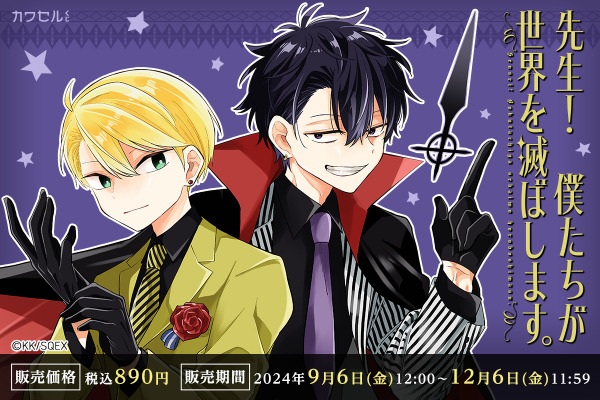 話題の学園ファンタジー「先生!僕たちが世界を滅ぼします。」の「カワセルくじ」が販売開始です。