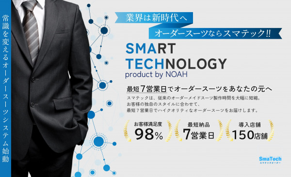 テクノロジーを駆使して7日間でフルオーダースーツを仕上げるスマート生産システム「スマテック」を開発・運営。