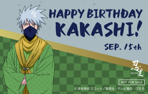 本イベントでは、これまでに忍里でイベントを行ってきたキャラクターたちの誕生日をお祝いする、忍里オリジナルのバースデーカードをご用意いたします。9月は「はたけカカシ」「奈良シカマル」「山中いの」「奈良シカダイ」をお祝いします!