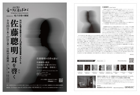 音の始源を求めてPresents 電子音楽の個展「佐藤聡明」耳を啓く(ひらく)を開催します。