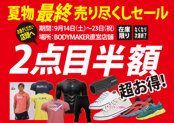 ■BODYMAKER夏物最終売り尽くし「2点目半額」セール(直営店舗限定)