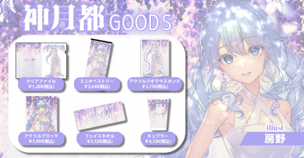 イラストレーター『房野』さん書きおろしの素敵なイラストを使用したミニタペストリーやクリアファイルなど、計6種のオリジナルグッズは、2024年10月10日(木)までの期間限定で販売しております。