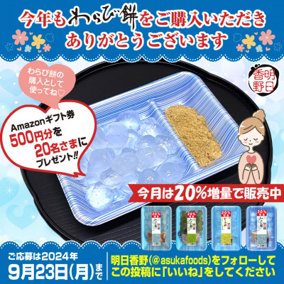また、2024年9月9日より「今年もわらび餅をご購入いただきありがとうございます」キャンペーンを開始しました。
