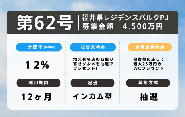 案件情報:「利回り不動産 第62号 福井県レジデンスバルクPJ」
