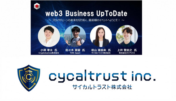 この度、cycaltrust株式会社(以下、サイカルトラストと言います)は、2024年9月19日(木)にオンライン(一般公開)て開催される【第4回 web3 Business UpToDate】に登壇することをお知らせいたします。