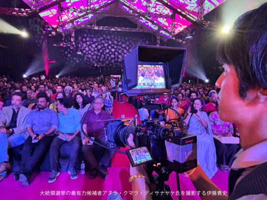 また、9月21日に行われる大統領選挙の最有力候補者アヌラ・クマラ・ディサナヤケ氏と映画関係の集会も取材。経済危機後初めての全国選挙による変革に期待を寄せる1500人、革命前夜の熱気を撮影した。