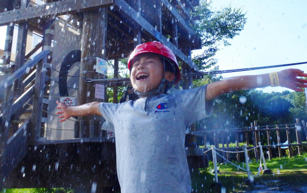本イベントでは、開催日の11時、12時、13時に一定時間、アスレチックエリアにて通常の何倍もの回数で水鉄砲が吹き上がります。大量の水が発射される中アスレチックに挑戦するスリルを味わいながら、残暑を涼しく楽しめるイベントとなっています。また、未就学児向けの「童コース」に参加されたお客様で、濡れずにクリアできた方には、「クレヨンしんちゃんアドベンチャーパーク」オリジナルステッカーをプレゼントいたします。