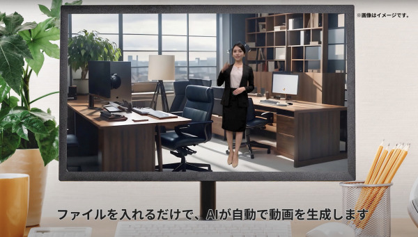 文章を入力するだけで、プロフェッショナルな動画が短時間で完成するため、社内研修や教育マニュアル、SFAと連携した取引先への動画制作など、企業が抱えるさまざまな動画制作の課題を効果的に解決します。