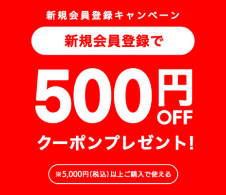 ■概要 GET BACKで新規会員登録をすると5,000円以上ご購入で500円OFFになるクーポンをプレゼント