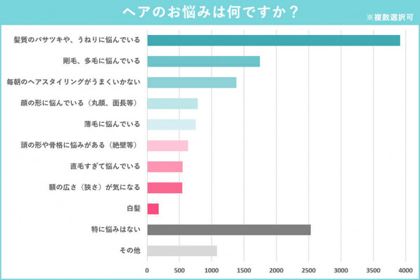 お悩みを複数個選択した人は合計で3,181人いらっしゃり、全体の3割の方がヘアについて複数の悩みを持っていることが分かりました。