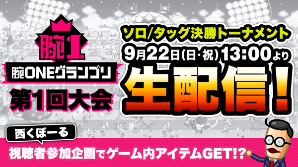 9月22日(日・祝)に開催される本大会は、「城ドラフェスティバル2024-2025 腕ONEグランプリ」の第1回大会の決勝戦です。トーナメントプラットフォーム「トナメル」を使ってトーナメントを実施し、大会の模様を開催当日の13:00から『城ドラ』公式YouTubeチャンネルにて生配信いたします。ソロ優勝者には10万円、タッグ優勝チームには各メンバーに5万円の賞金を授与。さらに2025年2月15日(土)に東京にて開催される「城ドラフェスティバル2024-2025 腕ONEグランプリ 王者決定戦」への出場権が与えられます。