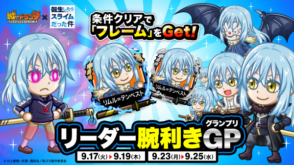9月23日(月)より、TVアニメ『転生したらスライムだった件』コラボ限定キャラ「リムル=テンペスト」をリーダーにして「キャラフレP」を競う、「リーダー腕利きGP」の2回戦目が開催中!ランキング上位者や条件を達成した方には、コラボ限定「キャラフレーム」が贈られます。「リムル=テンペスト」をリーダーにして期間中のリーグに挑みましょう!