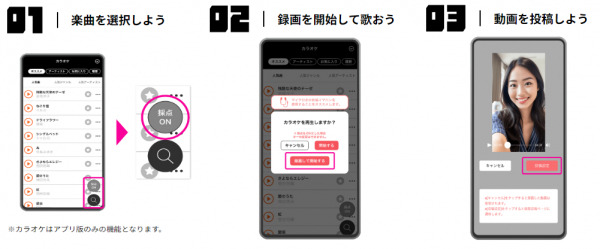 【2】楽曲を選択したら「録画して開始する」ボタンをタップしてカラオケSTART!