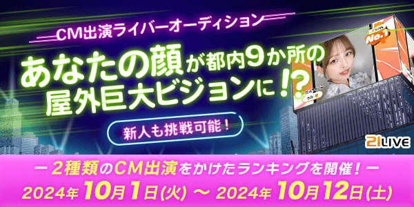 10月1日(火)より、「CM出演ライバーオーディション」が始まります。