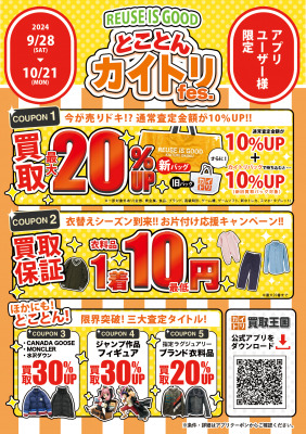 期間中は買取金額のUPや、お片付け応援キャンペーンなど様々な特典を用意してお客様のご来店をお待ちしております。