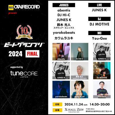 オタイオーディオ株式会社(オタイレコード)が2015年から毎年開催してきた日本最大級のビートメイク、作曲の大会”BEAT GRANDPRIX(ビートグランプリ)2024”の決勝大会が2024年11月24日(日)に名古屋大須のX-HALL ZEN で開催することが決定した。