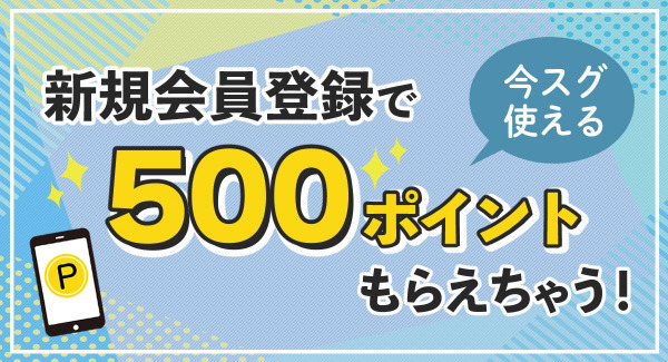 新規で会員登録をいただくと、すぐに使える500ポイントを進呈中。