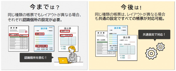 同じ種類の帳票であっても、レイアウトが異なる場合、それぞれで認識箇所の個別設定が必要でした。