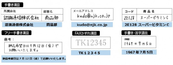 従来のOCRで誤認識しやすかった一般名称欄や備考欄なども含め、項目を限定することなく高精度な認識をすることができます。