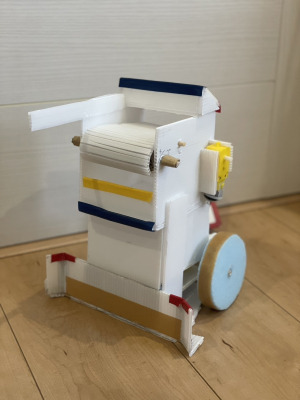 自分だけのオリジナルのロボットを作成し、フィールドにちりばめられた文房具を集め、運び出した数で特典を競います。