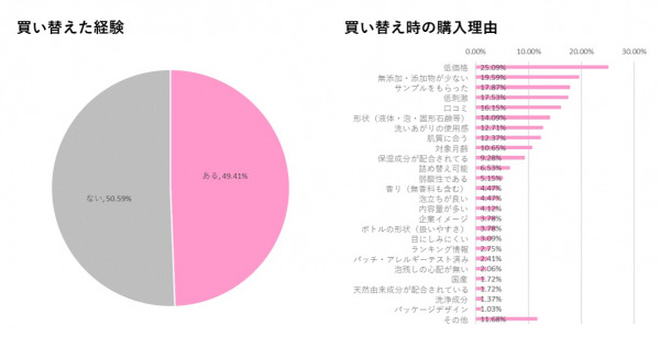 ●ブランドスイッチありは半数、その理由で首位は価格、3位がサンプルをもらったこと