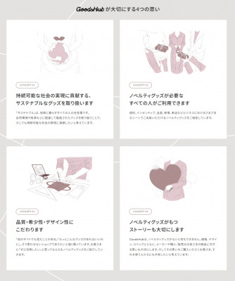 まずは、GoodsHubを通して、少しでも持続可能な社会の実現に貢献していくこと。その上で、ノベルティを購入いただいた企業さまに満足いただくことを念頭に活動していきます。